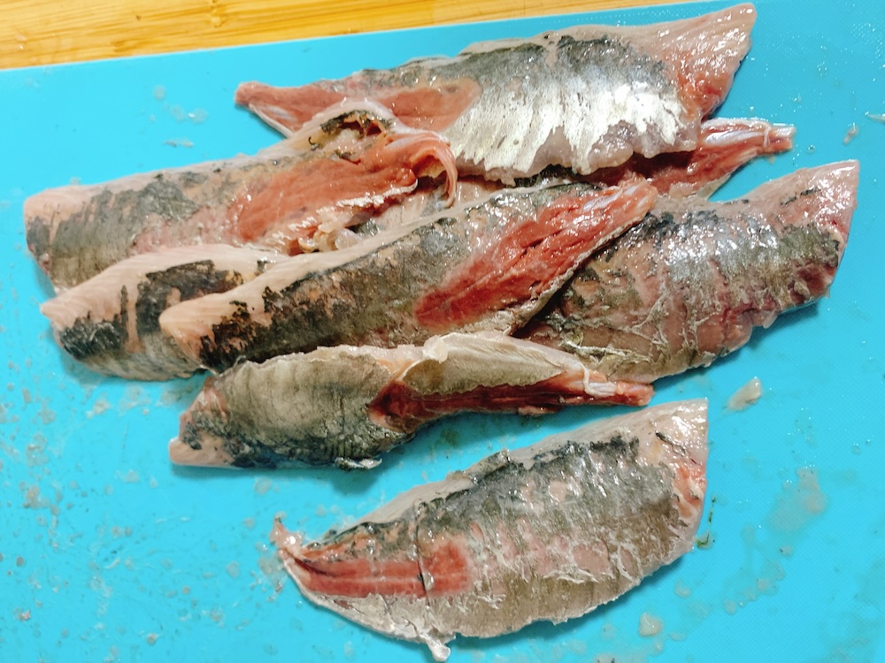 初めの頃は「ぜいご」の部分を切るときに、勢い余って何度か指を負傷したものだが、今となっては手慣れたもの。