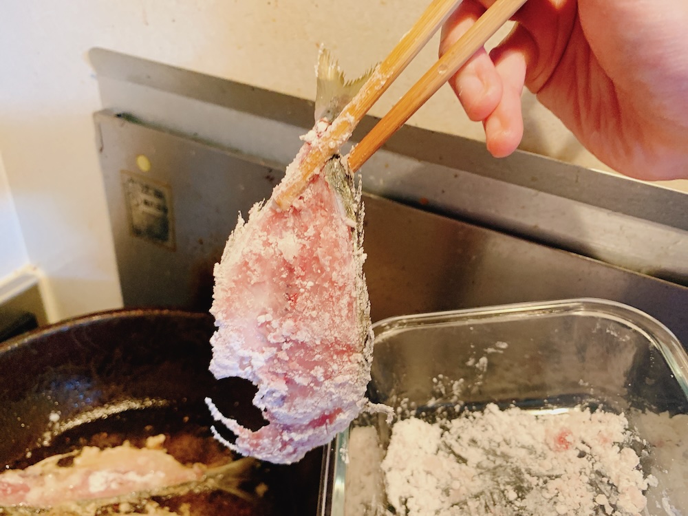 お刺身にしなかった、もう半分の身は、ゴマアジに。