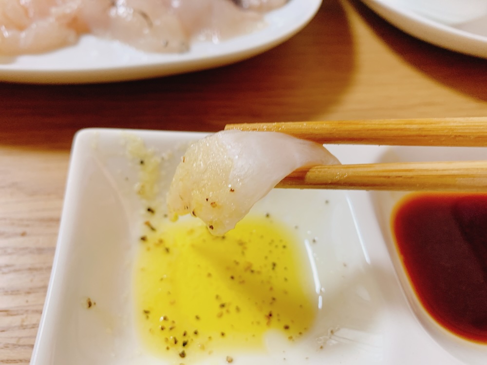 鮍と鱸のお造り、鮍のキモ付き。