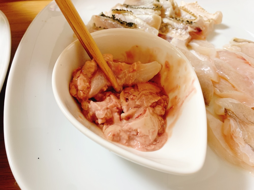 鮍といえばこのキモと醤油を和えた「肝醤油」で刺身をいただくのが定番である。