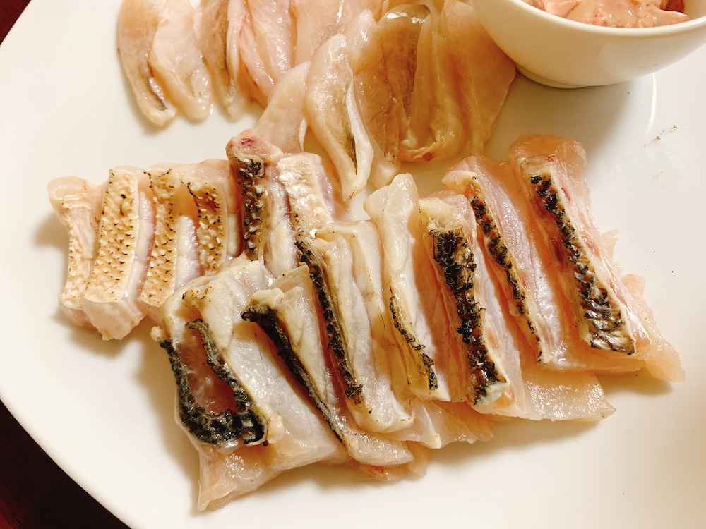 鱗は黒いけど身は綺麗な白身で、白ワインによく合いそうだなあ…。