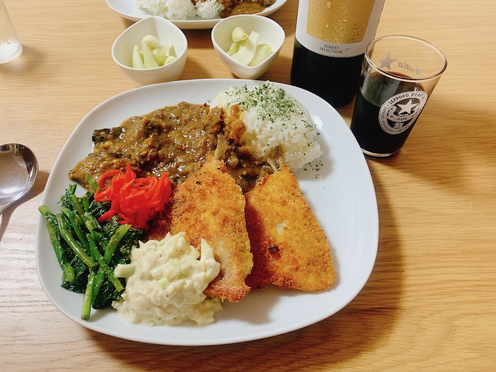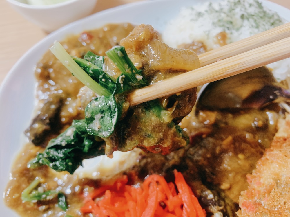 ほうれん草はカレーによく絡めて、口の中でサグカレーを錬金する。