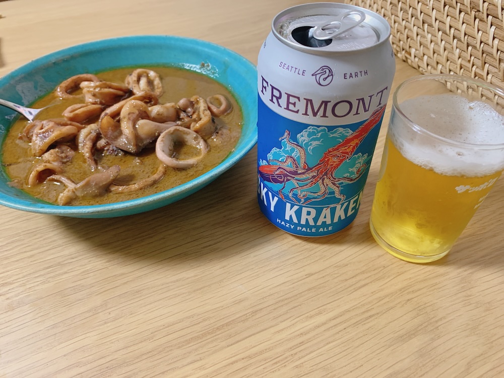 冷蔵庫で冷やしてあった、とっておきのクラフトビール「スカイクラーケン」で乾杯。
