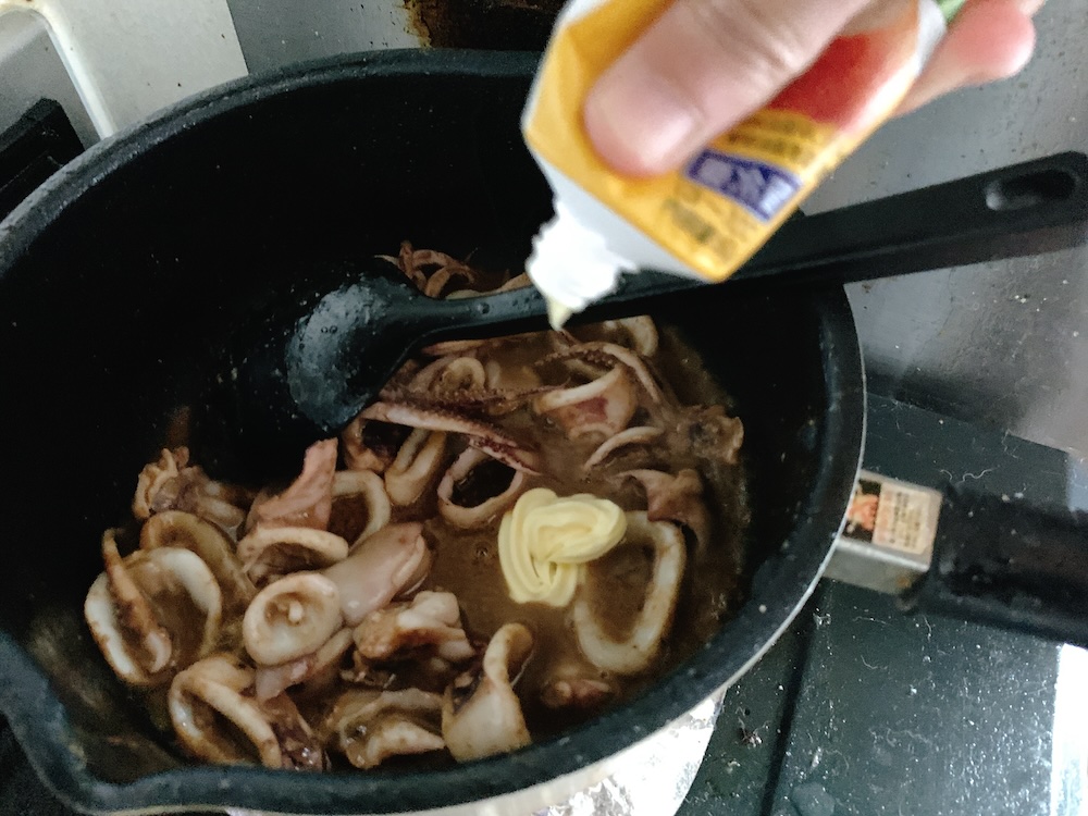 バターも投入して仕上げ。ケチらないのがコツである。