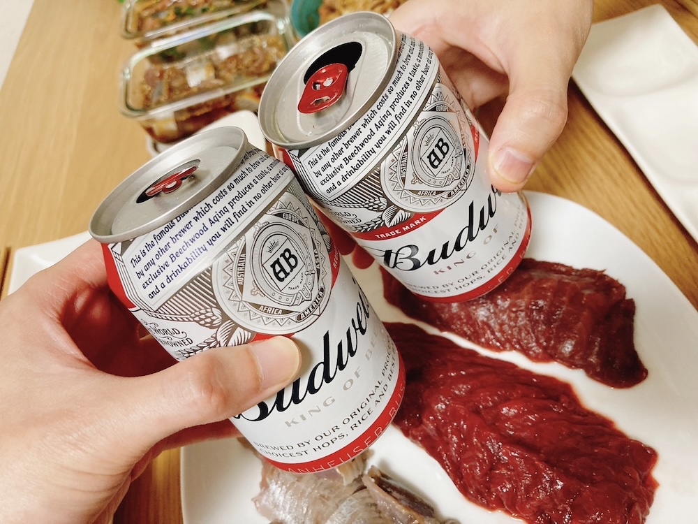 ほいじゃあ、とりあえずBUDで乾杯で。