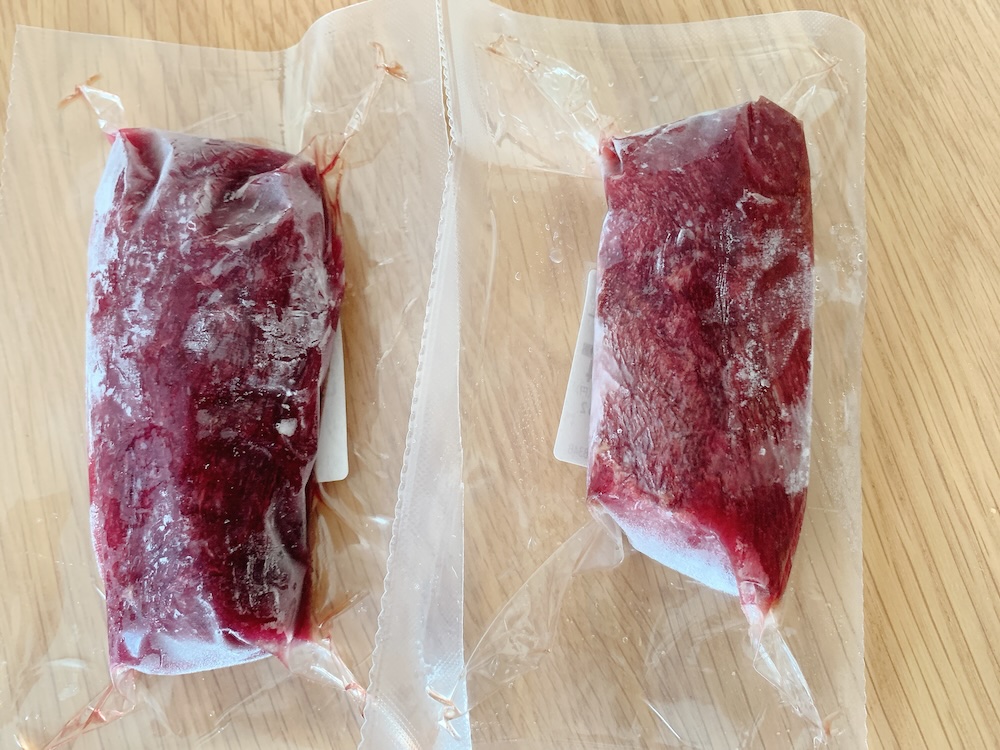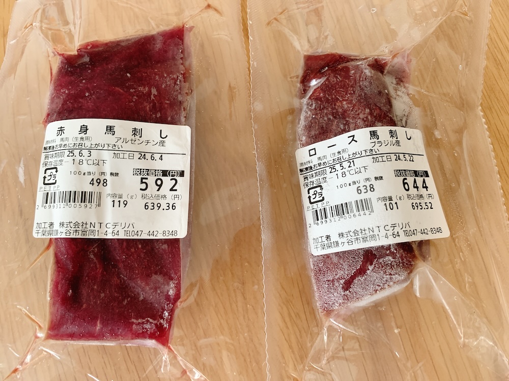 用意したのは、同じく業スーの冷凍馬刺し2種。