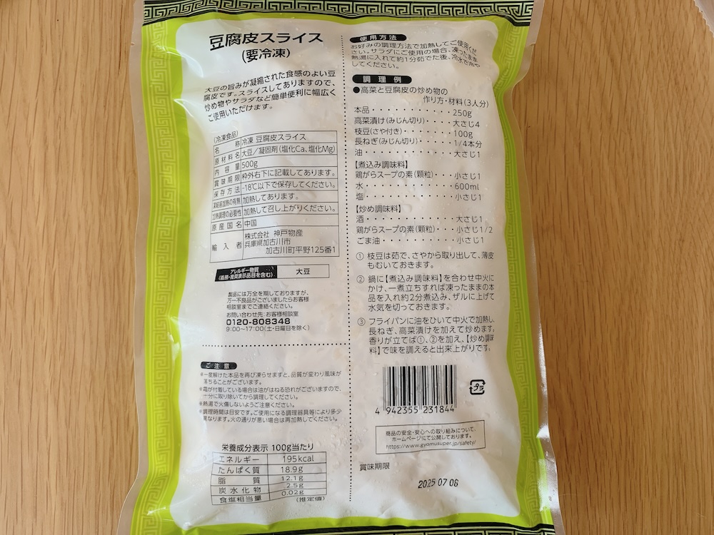 豆腐皮、歯応えはあるが味は豆腐なので、豆腐に合う味付けはなんでもイケるポテンシャルの高さである。