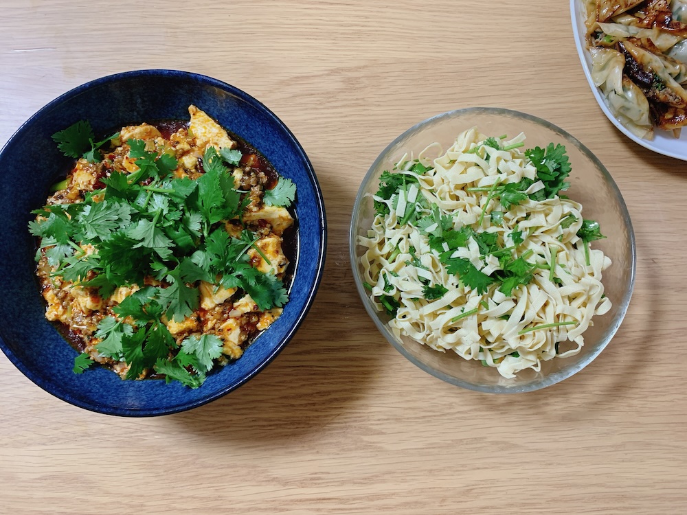 ちょっと失敗した見栄えの悪いパクチー餃子が映り込んでしまった。(もちろん美味しくいただきました)