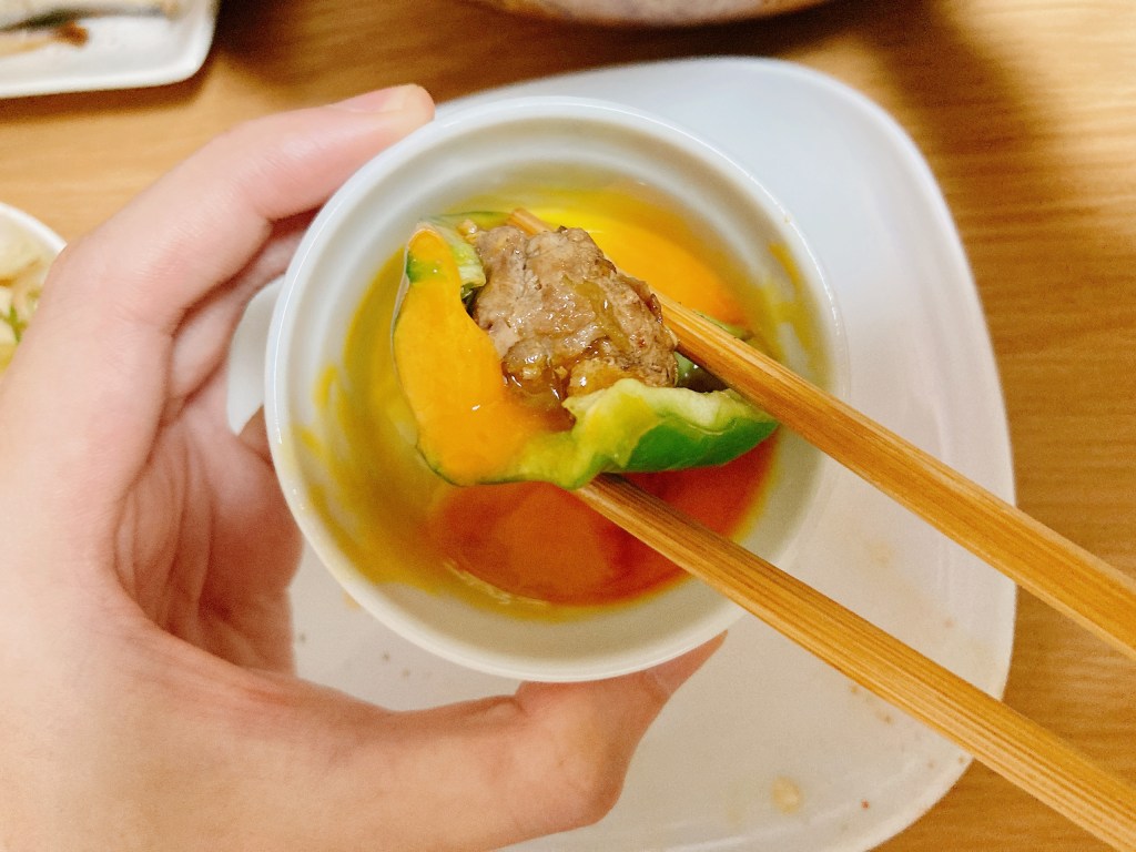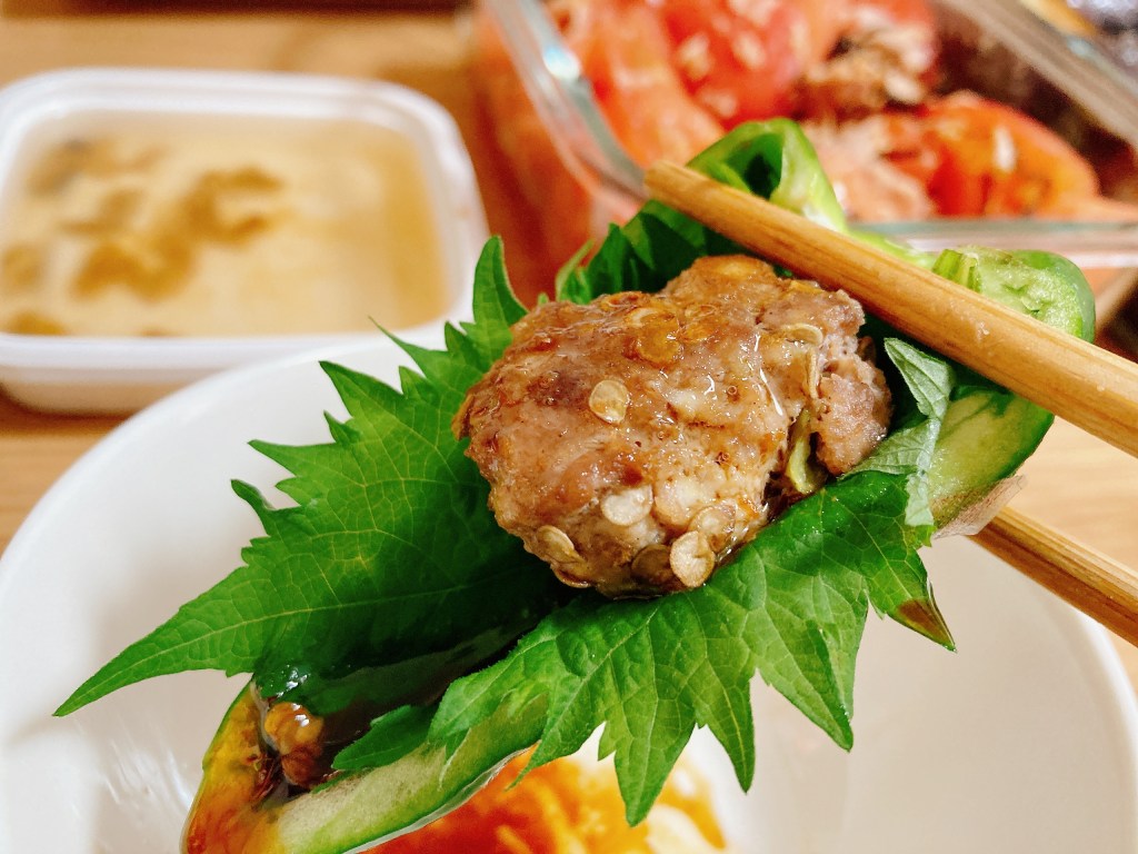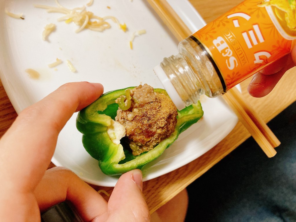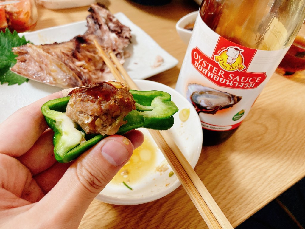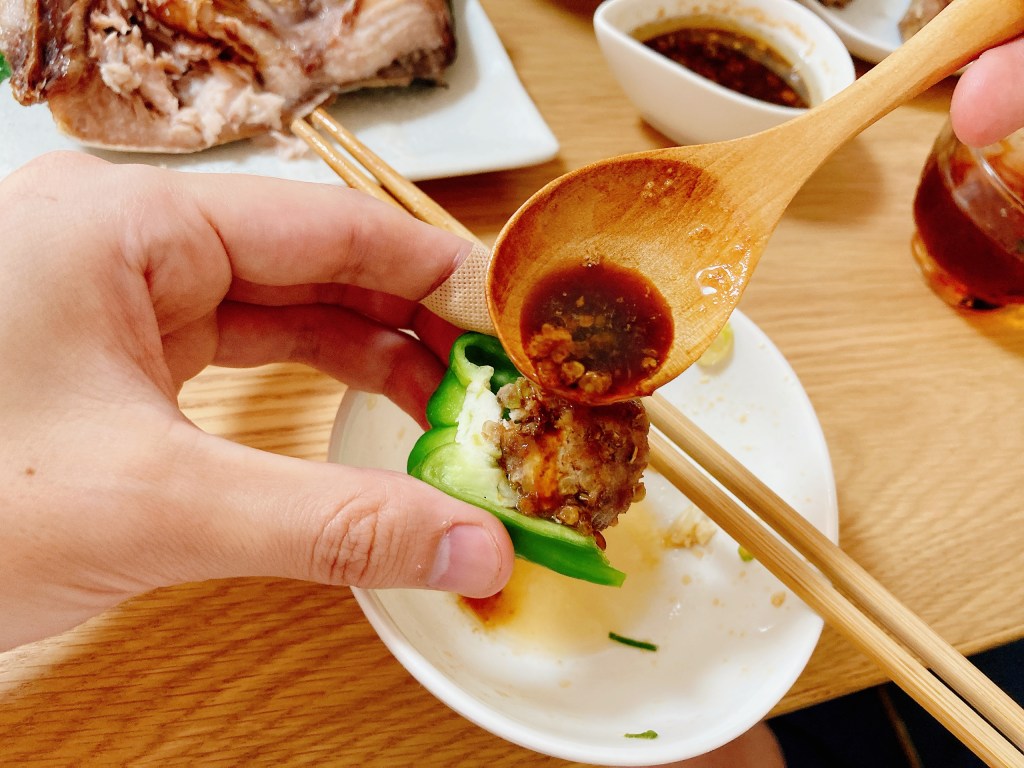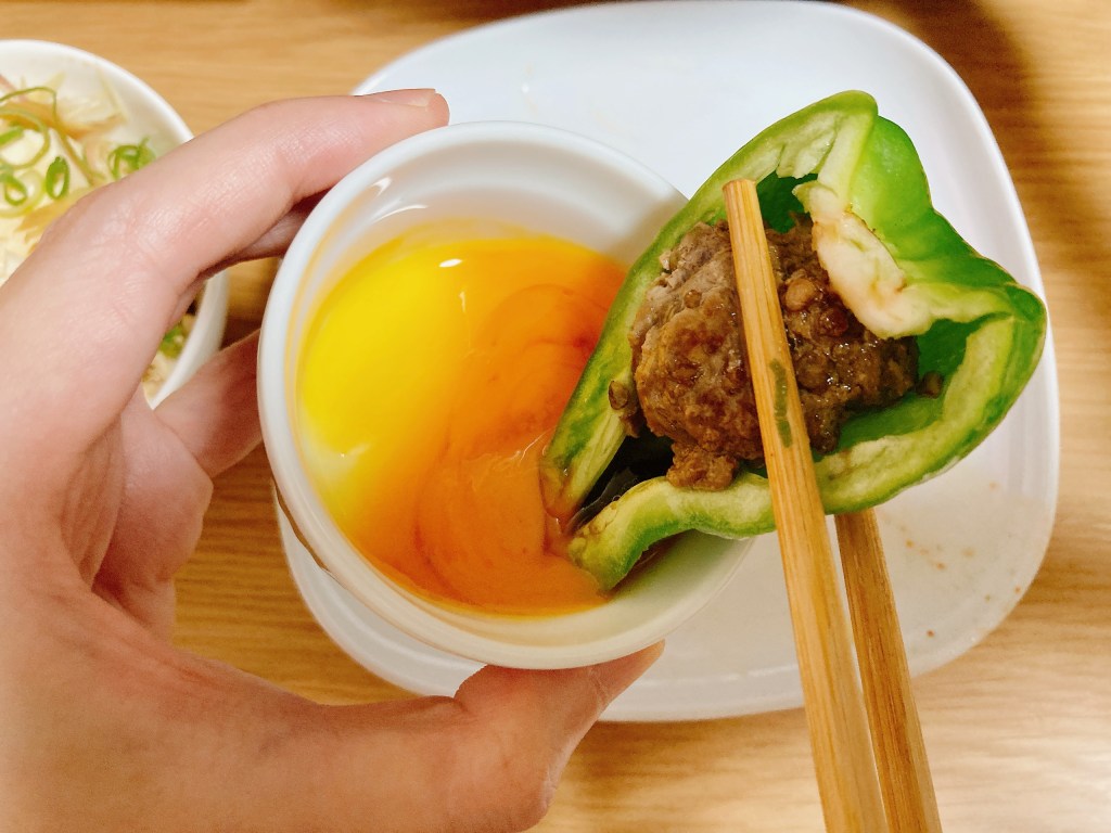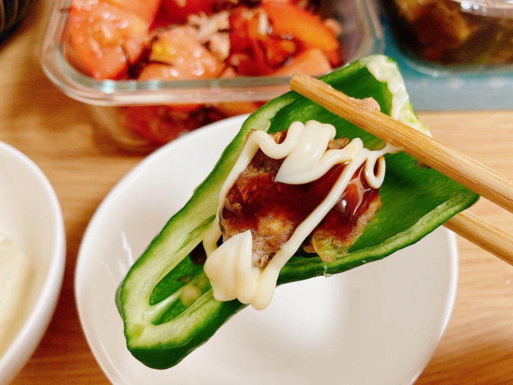 んんんん~!!!ガツンと肉肉しさを感じるのに、お豆腐入りだからふわっふわでヘルシー。ピーマンのタネ&ワタの苦みがあとから追いかけてきて素晴らしいアクセントになっちゃってます。ひとつが小さめなので、軽く食べられるのもうれしい。
