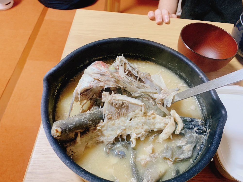 器を持ち上げ、あら汁に箸をつける。