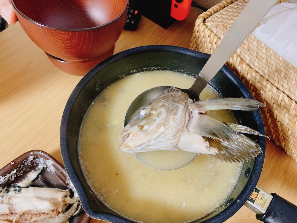 俺が作った、カワハギの頭入りの、滑稽なスープは果たしてうまくできているだろうか。