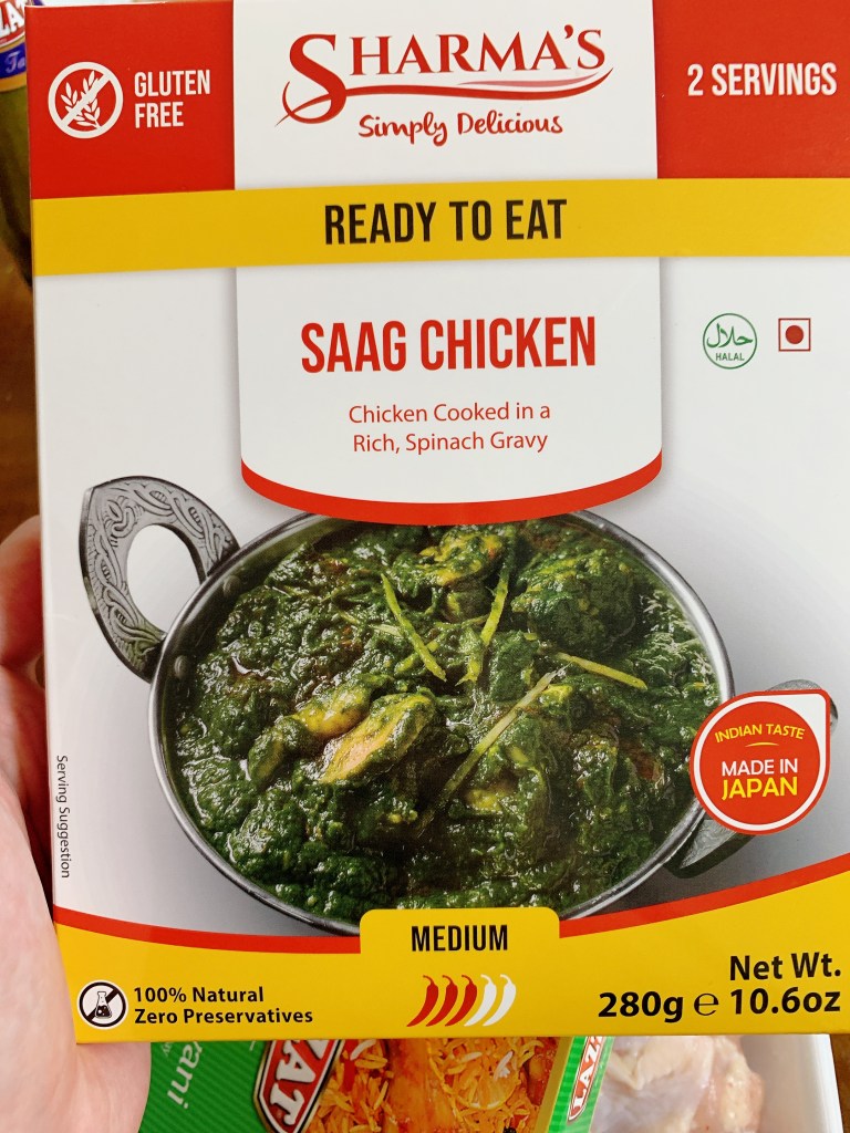 サグチキンカレー。こちらも温めるだけで美味しいレトルト品。