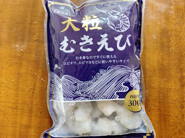 続いては業務スーパーの冷凍食品「大粒むきえび」を使って、ぷりぷり辛旨のエビチリのレシピの紹介です。業務スーパーのむきえびは調理がしやすいようにむき身でパックされていて、大粒なので食べ応えがあっておすすめです。