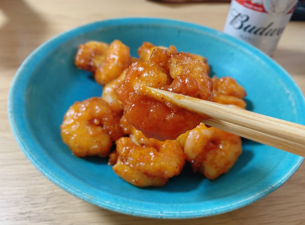辛旨ソースに絡めたらあっという間に完成です。業務スーパーの食材だけで作ったとは思えないほど本格的な香りが食欲を刺激します。