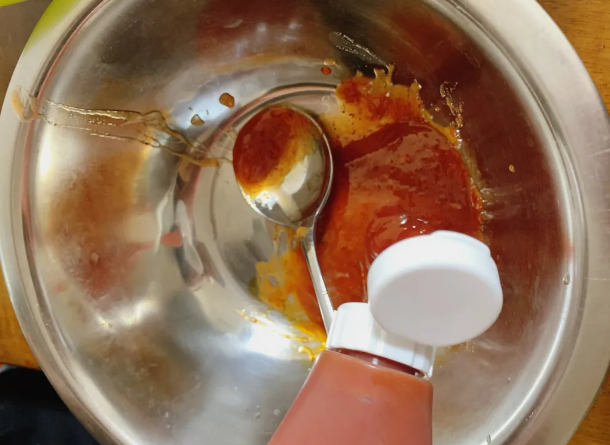 ケチャップでまとめてソースは完成です。もちろんケチャップも業務スーパーです。お好みでサテトム、シラチャ―ソースなどエスニック系のスパイスを使っても美味しいです。