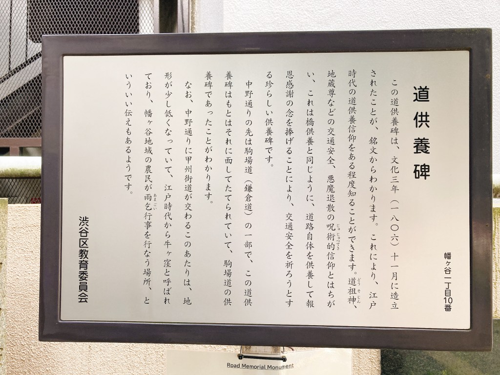 牛窪地蔵尊は甲州街道の大きな交差点に面しており、道路そのものを供養して報恩感謝を捧げるのが特徴である。