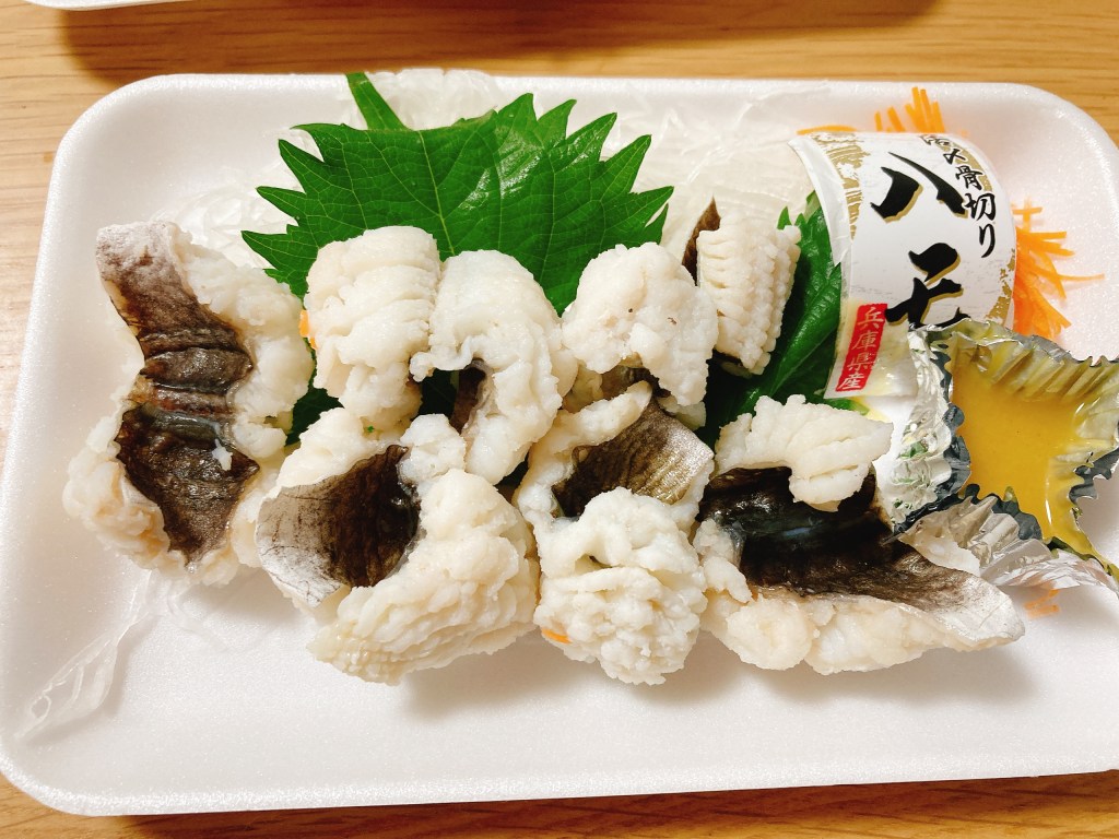 続いてはハモに酢味噌をつけていただいていく。漢字で書くと魚に豊かと書いて、「鱧」。栄養価が高いことが漢字の由来からもよくわかる。調べてみると、この日は8月3日、鱧の日だった。