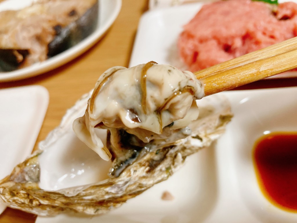 この日の牡蠣も濃厚でプリプリで新鮮なことがよくわかる味わい。「じゅるじゅるっ」と一口で頬張る。口いっぱいに潮の香りが広がって、牡蠣汁が溢れ出す。口から零れそうなくらいジューシーな牡蠣であった。
