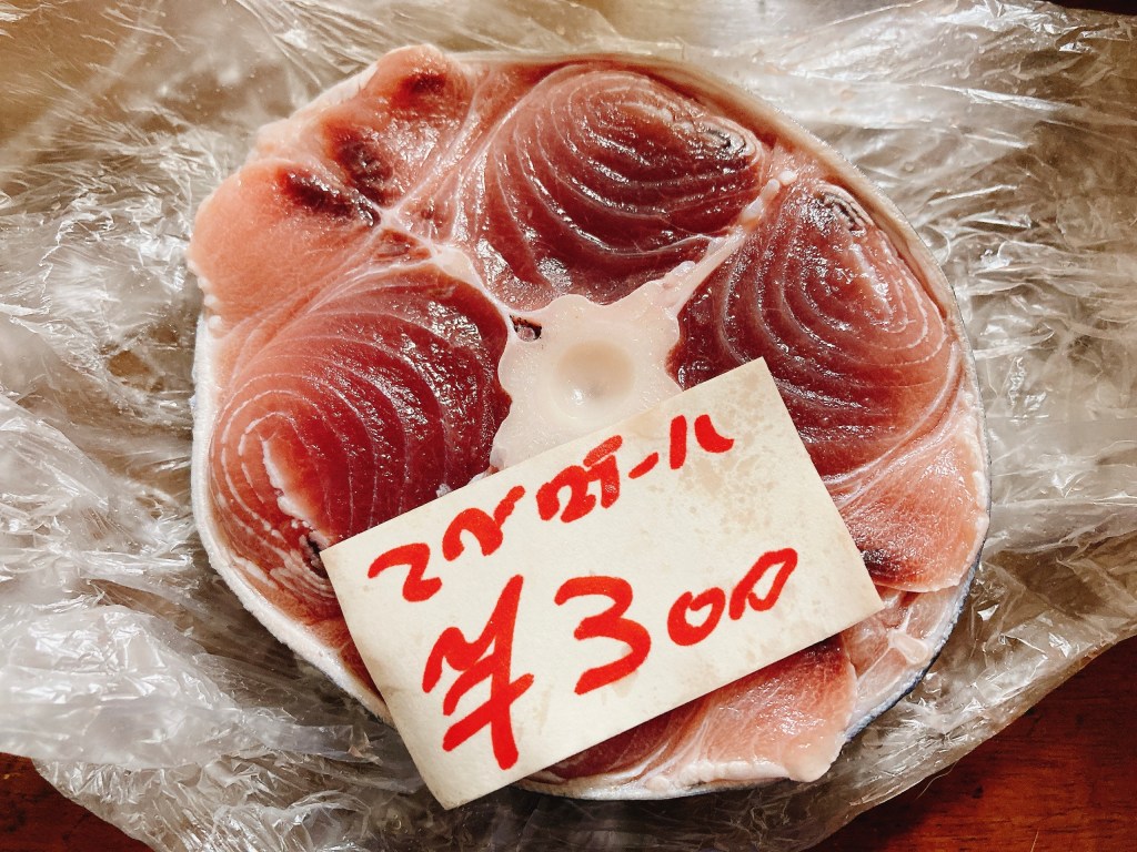 テールは身離れがよく食べやすい。そして程よい脂乗りと肉感を感じる赤身のバランスが最高にうまい。これがテール(尾)だというのから体の大きさもさぞかし立派なマグロだったのであろう。よくここまで大きく育ったものだ。
