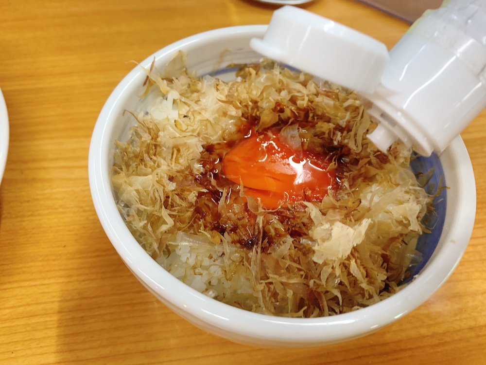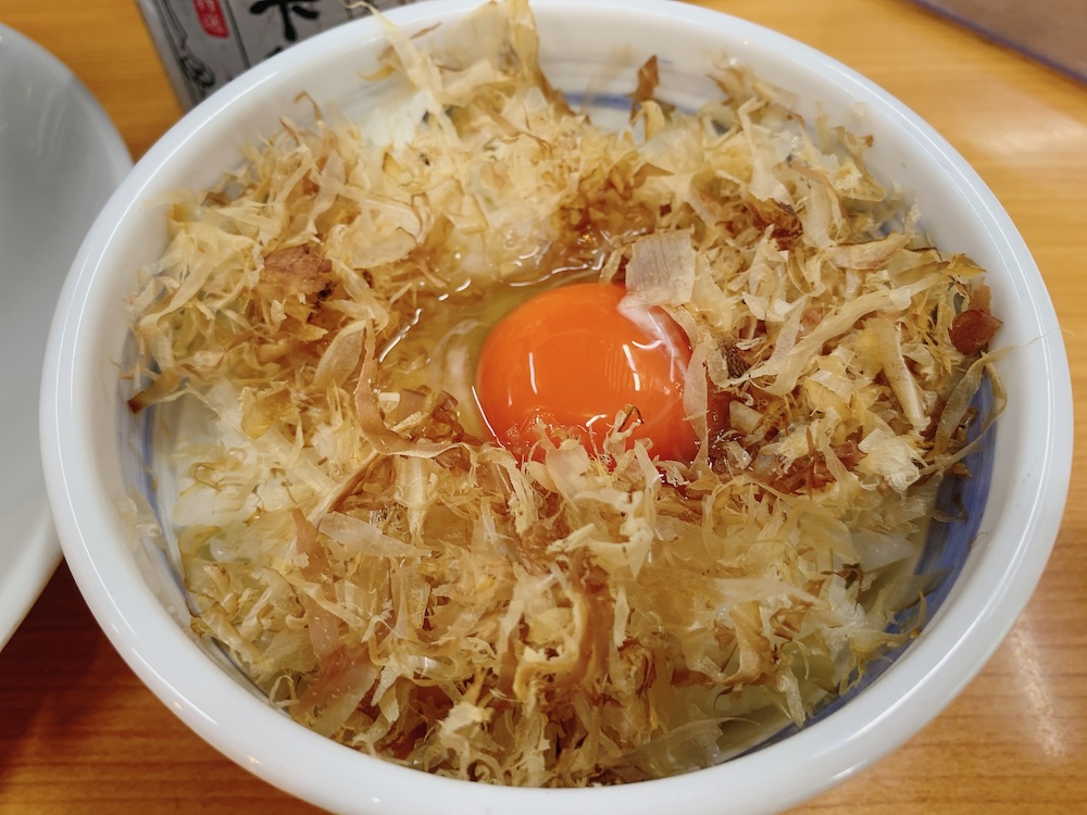 鰹節ご飯も、卵かけご飯も、家で食べるとなんとなくしょぼくれた食事といった気分になるのに、外で食べると贅沢なご馳走になるのはなんでだろうな。