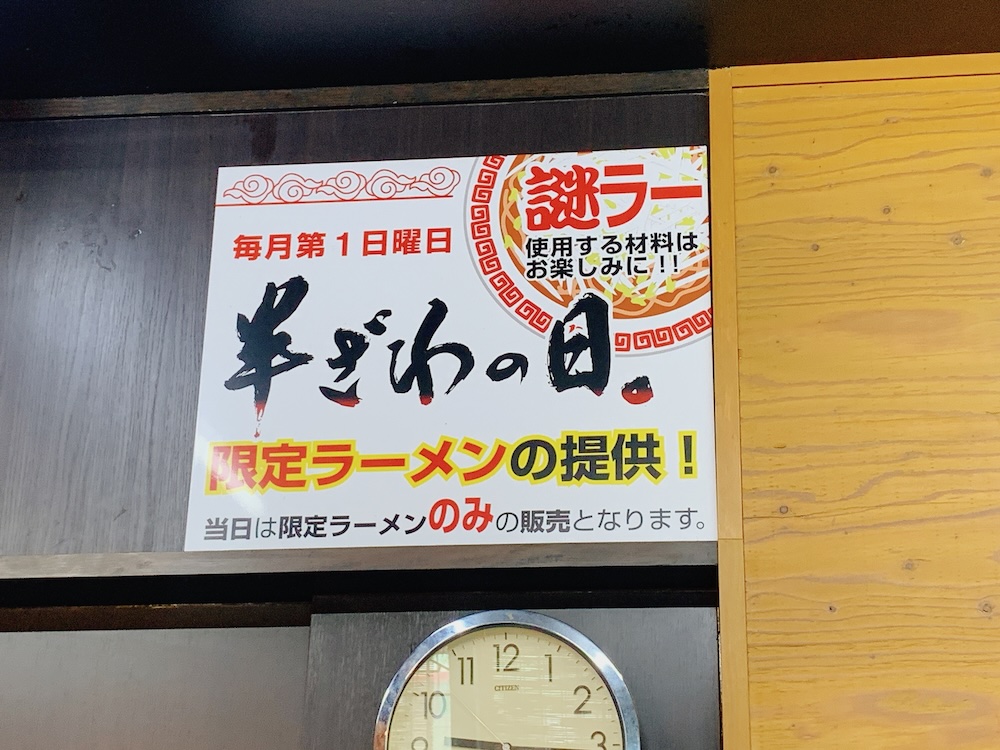 毎月第1日曜日は限定ラーメンの日なんだとか。