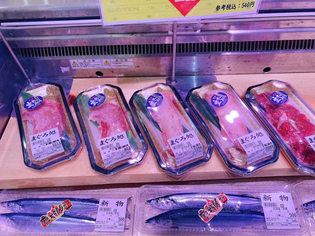 笹塚の鮮魚さかなや『旬』のすごいところはマグロの珍しい部位が手に入ることです。この日ははちのみや頬肉がありました。マグロの目玉が手に入る日もあるので、ゲットしたらぜひしょうがと醤油で煮込んでみてください。トロットロのコラーゲンでめちゃくちゃ美味しいおつまみになりますよ。