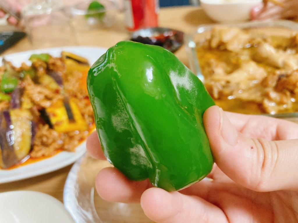 本場四川風の『魚香茄子』が完成した。四川料理のお共はもちろんビールから。待ち遠しいところではあるが、まずは前菜からいただこう。冷凍庫から『冷やしピーマン』を出してくる。