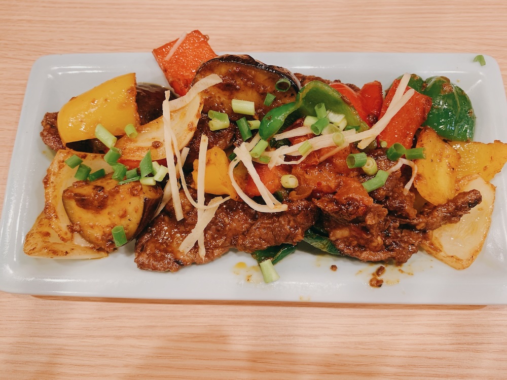 タカタクカバブ。ラム肉と野菜の炒め物。