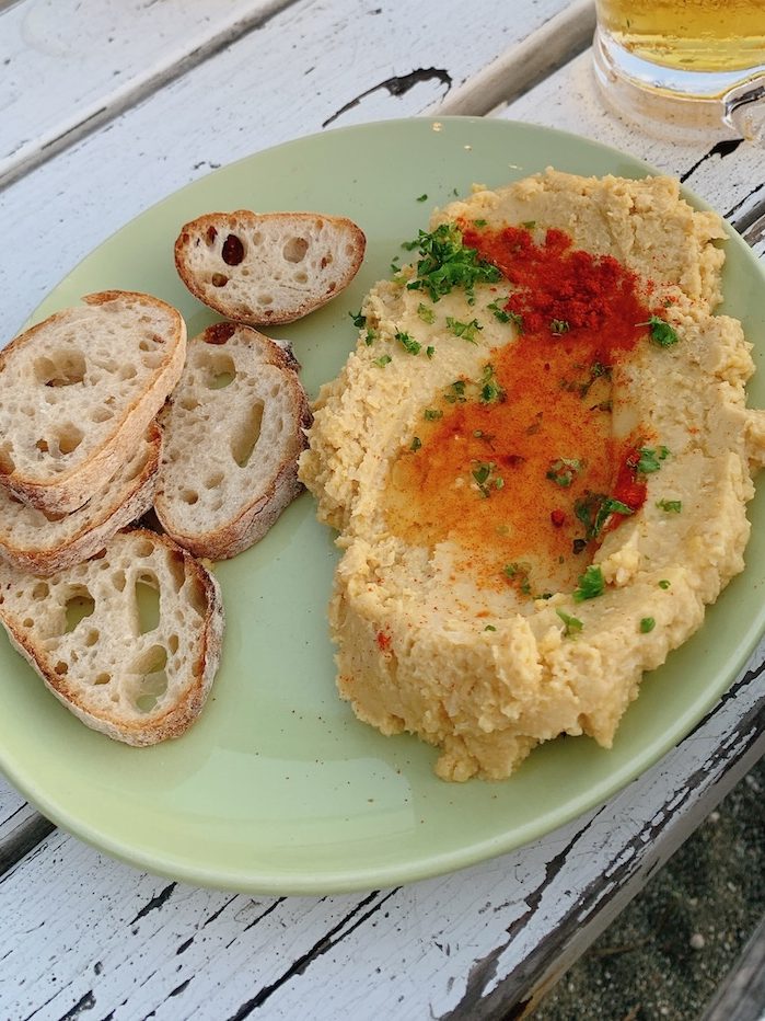 絶品フムスはおつまみメニューでも食べられる。顔に塗れそうなくらい出てくるよ。