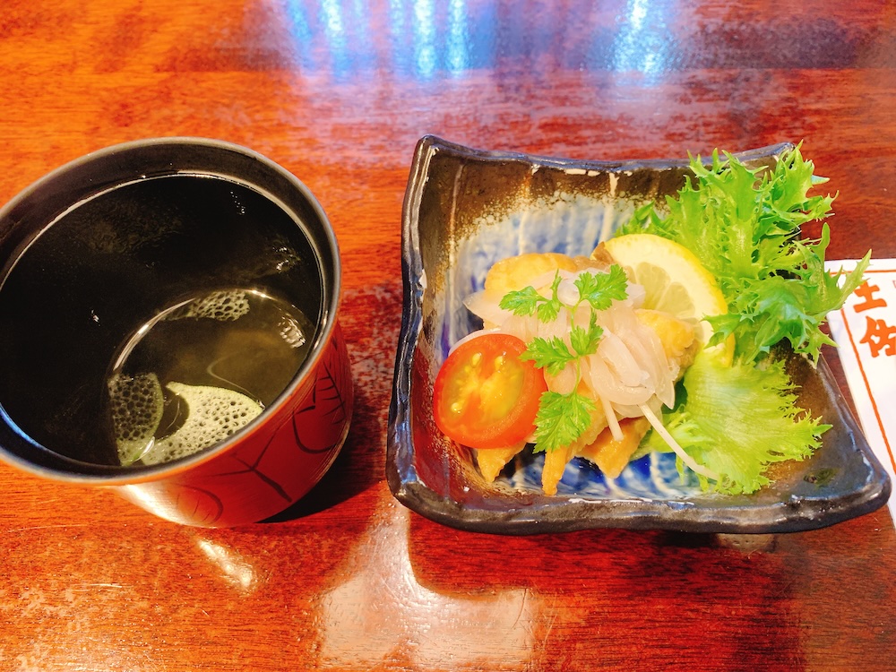お通しは南蛮漬けとお吸い物。柑橘系のビールとセットで爽やかだ。