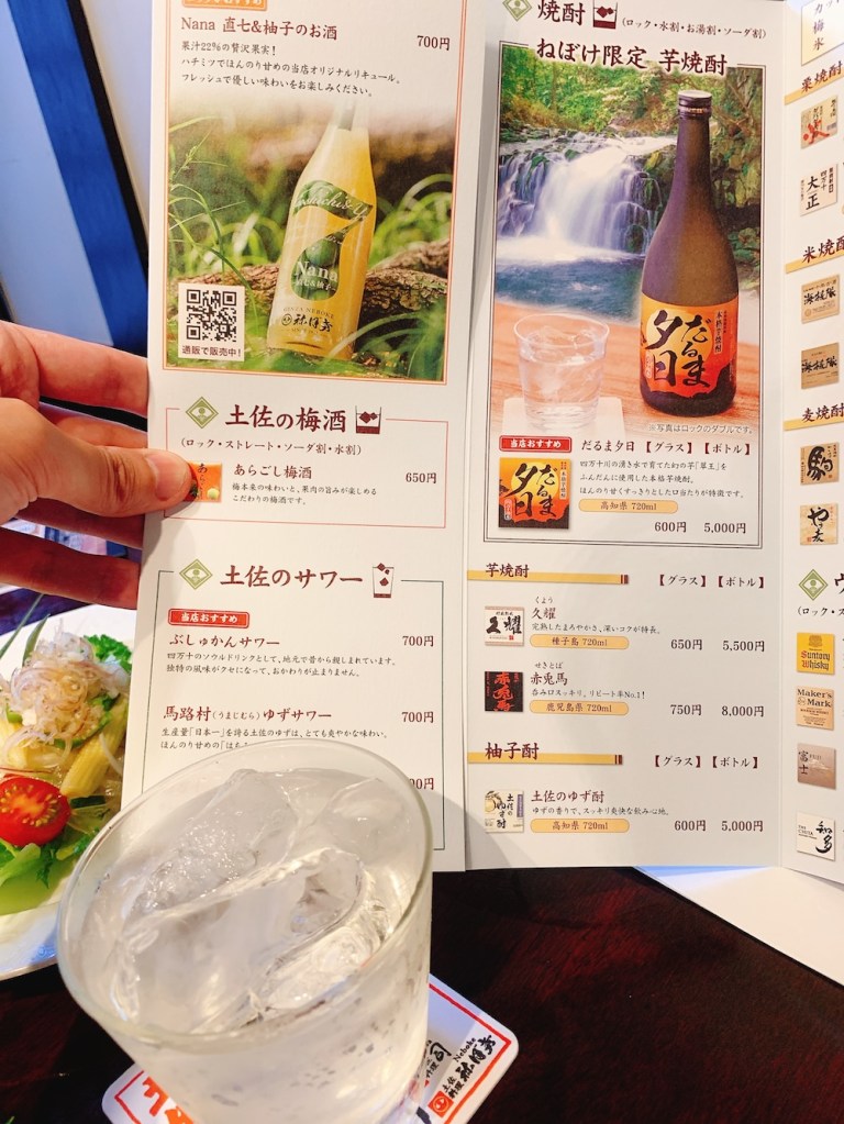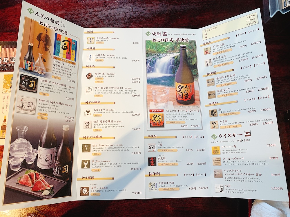 高知といえばやはり焼酎のイメージ。日本酒だと酔鯨や土佐鶴か。このお店限定の酒がいろいろあるので、そこを攻めていくぜよ。