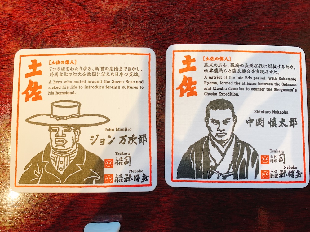 コースターに描かれているのは高知にゆかりのある人物たち。広末涼子はないのか?