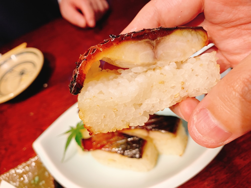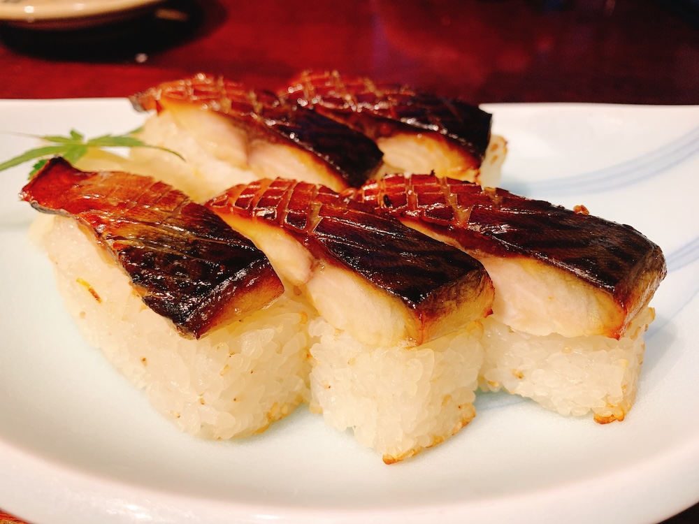 〆は焼きさばの棒寿司。