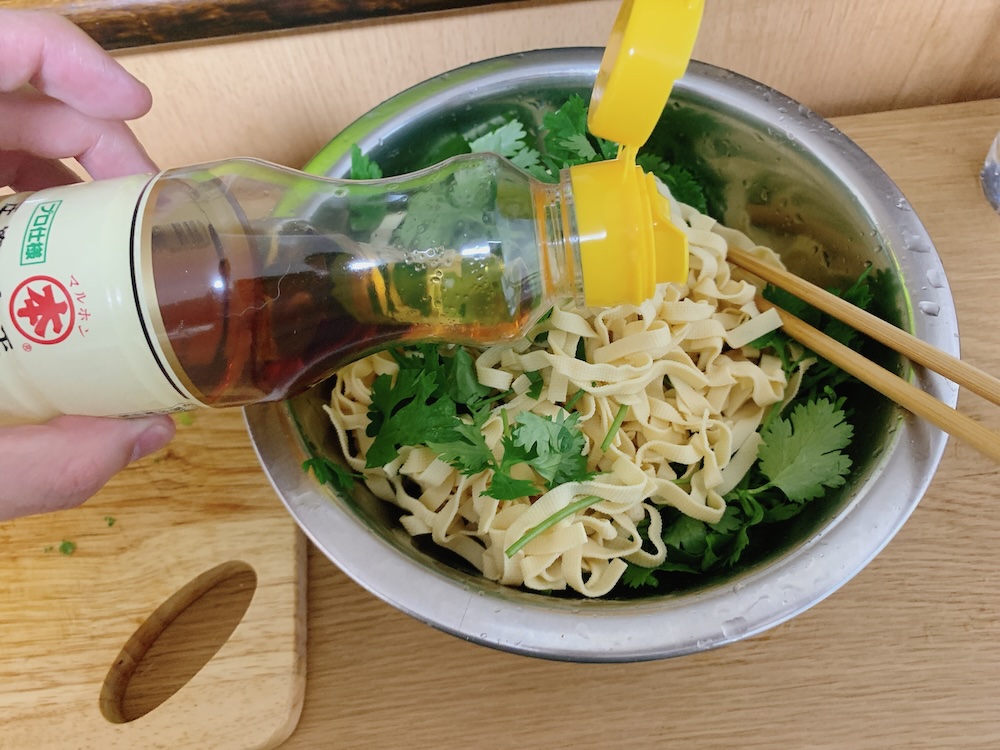パクチー好きな人はもっとたくさん入れてもOK、苦手な人は大葉とか他の薬味で代用したり、豆腐皮に味付けしただけの状態でも美味しいと思います。ラー油、黒酢等で味変するのも面白いかもしれませんね。