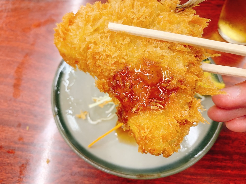 まずはカラシ、次はソース、さらに醤油…と、ひと口ごとに味を変えていくのが飛天・俺流。