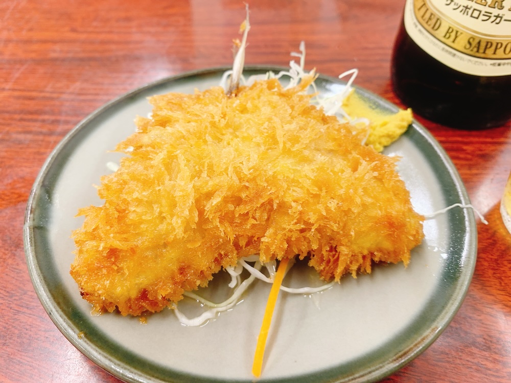 主に海鮮系に定評がある店。特に立派なエビフライは名物で、ロゴにも使われている。