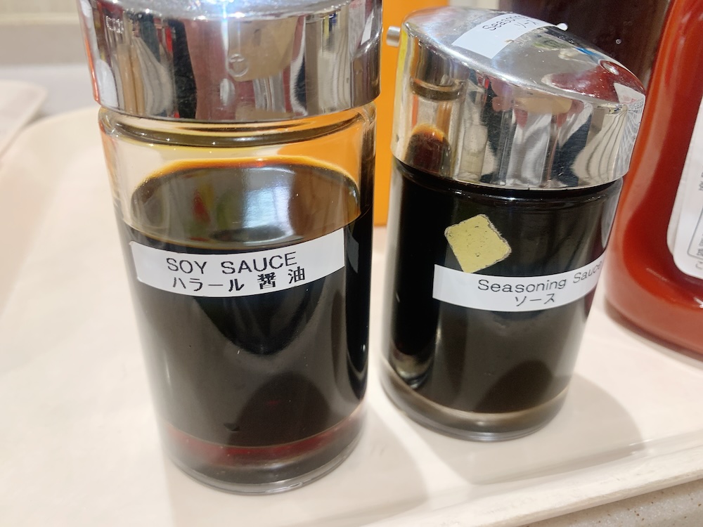 定食メニューはもちろん、調味料にもハラール食品が用意されてるよ。