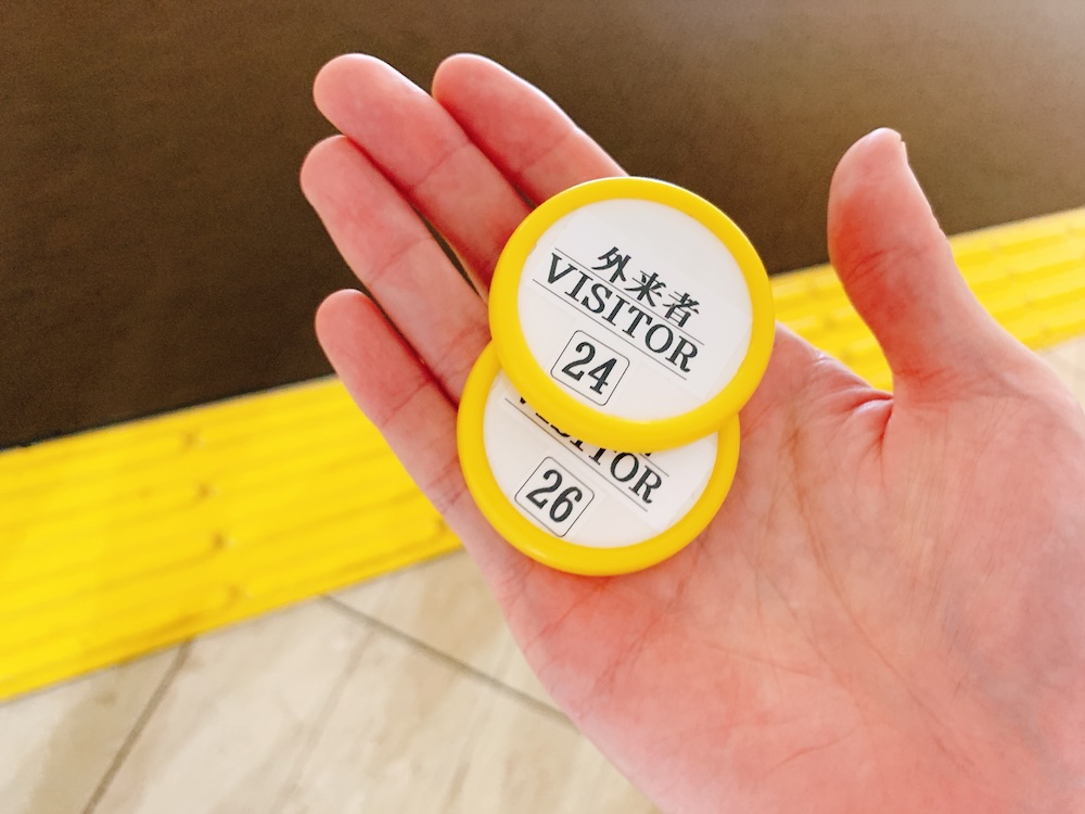 一般客は入り口で名前や人数を記入して、ビジター用のバッジをもらう。
