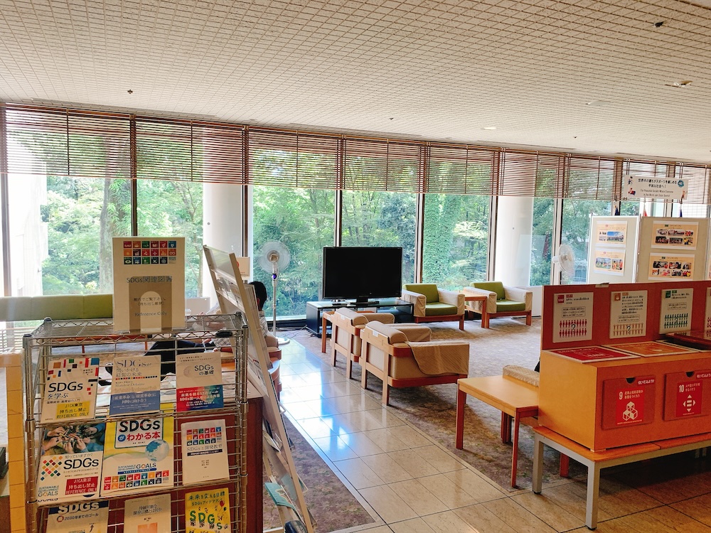 大きな窓から見える景色も緑が多くて、温泉地にある上等なホテルのロビーみたいだ。