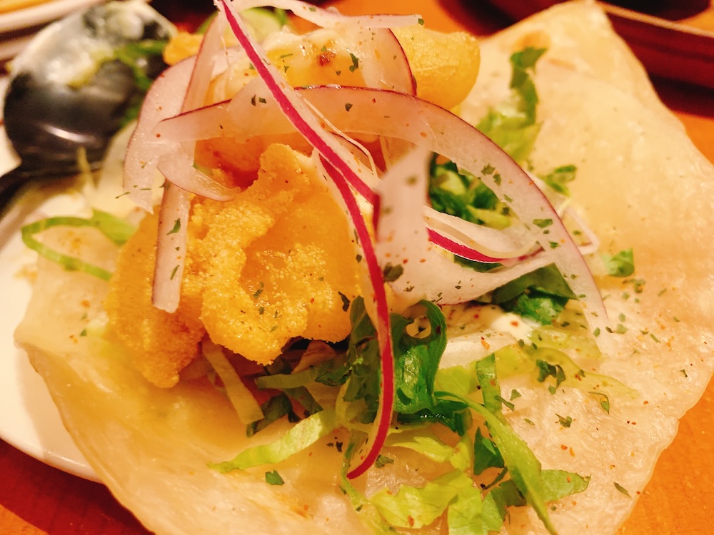 ここのトルティーヤ(皮)は厚過ぎないので、たくさん食べてもお腹に溜まり過ぎないのが酒飲みには嬉しい。