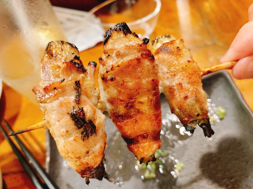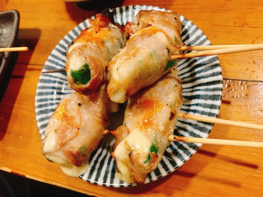 この店の肉巻き野菜串が俺のお気に入り。これはみょうが肉巻。