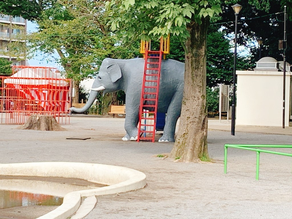 ゾウさん滑り台。最近塗り直したのか、美人になった。