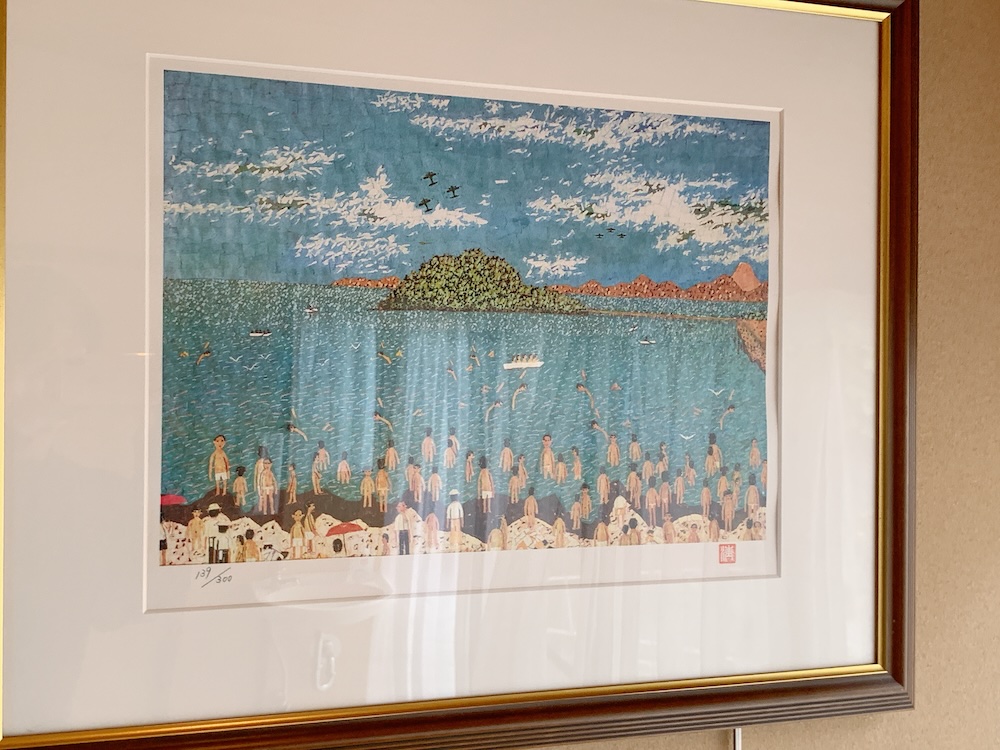 いい絵だな。空を飛んでる黒い影は鳥だろうか。飛行機にも見えるが…。