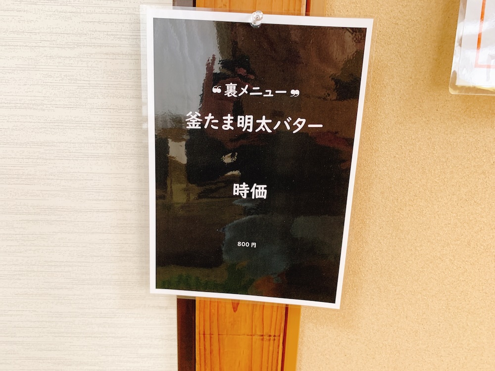 裏メニューの釜玉明太バター(時価)が気になりすぎる。