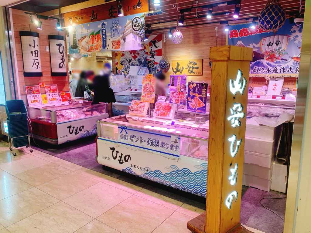 山安ひものが入っているHaRuNe(ハルネ)は小田原駅直結の地下街。この日は抽選会かなんかやっていて、カランカランと景気のいい別の音が鳴り響いていた。