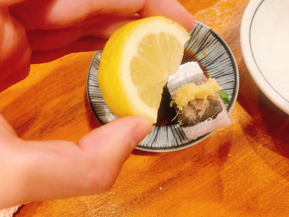 アジには生姜とレモンでスッキリと。分厚いレモンは余ったらサワーにでもぶち込んでおけばいい。美味いアジを食べるとアゴがキュンキュンする。