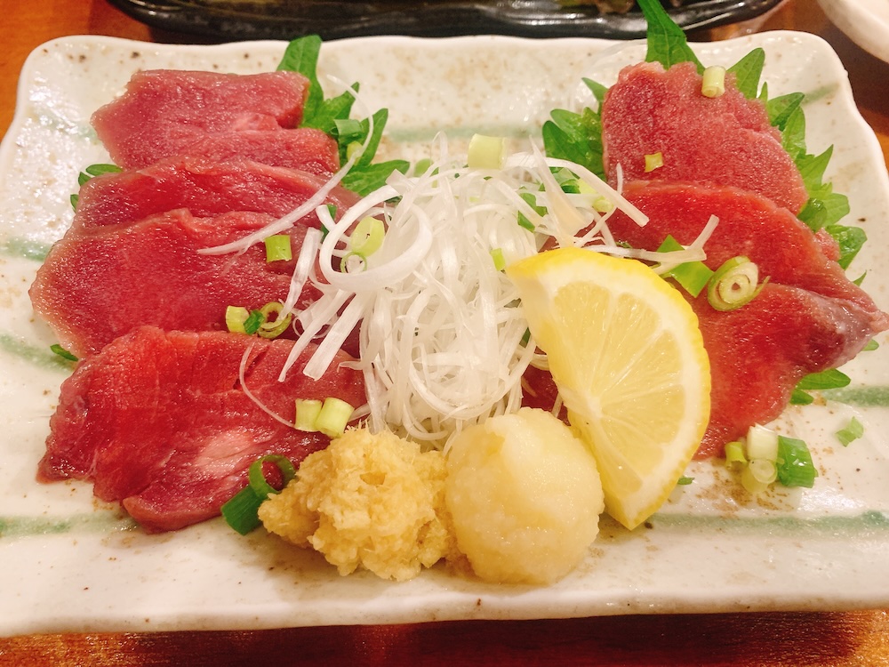 馬刺しは赤身。とても美味しいけどゲイバー出勤前の人は、生ニンニクは避けた方がいいかもしれない。馬肉を食べると血がたぎるのか、冷え性の俺の指先にも温もりが宿るような気がする。それとも、新宿というスレた街に差すひとところのひだまりのようなこの店の雰囲気が、そうさせるのだろうか。