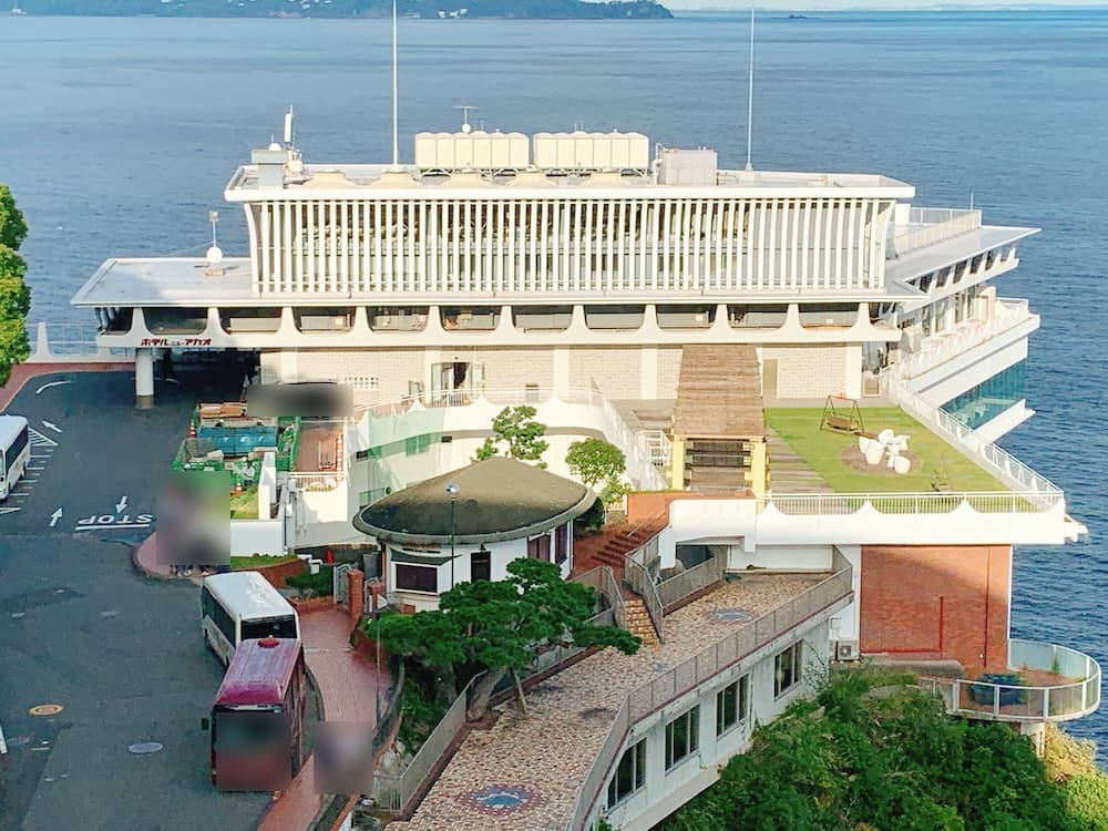 ずっと来てみたかった、熱海の老舗オブ老舗。岸壁と融合した巨大建造物。まさに生きる伝説。みんなの憧れホテルニューアカオ!熱海のランドマークと言って差し支えない。