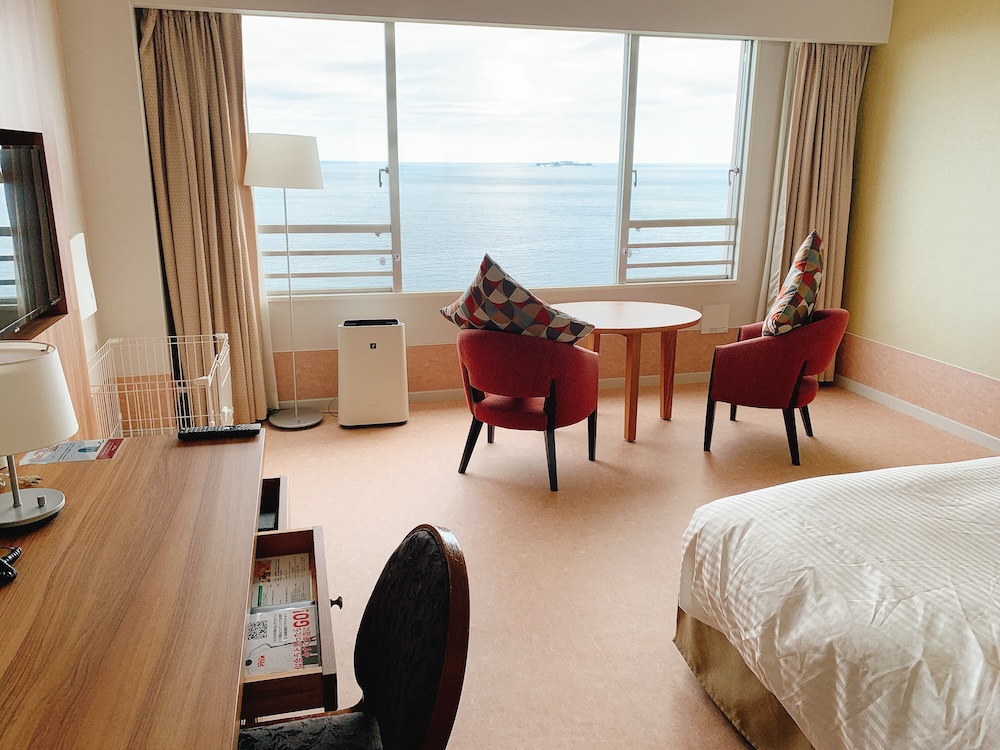 誕生日ということで、ちょっといい部屋を。海の向こうに見えるのは初島(だと思う)