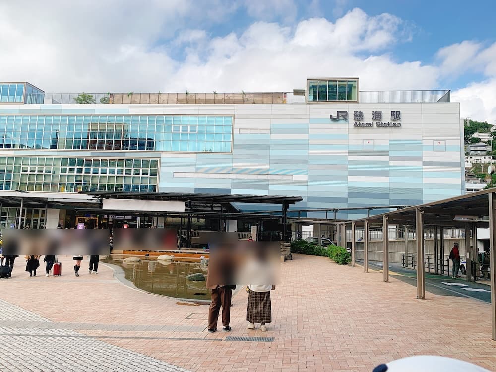 やってきましたは熱海駅。あちこちで若いカップルがイチャイチャしている(羨ましい)中をかき分けて、ここからホテルニューアカオでの送迎バスに乗り込む。